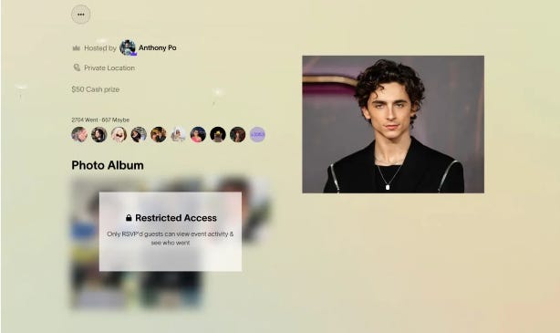 Each event followed the same playbook: slightly absurd, deeply shareable, and centered on hyper-recognizable faces. And behind the scenes? Always, Partiful.
